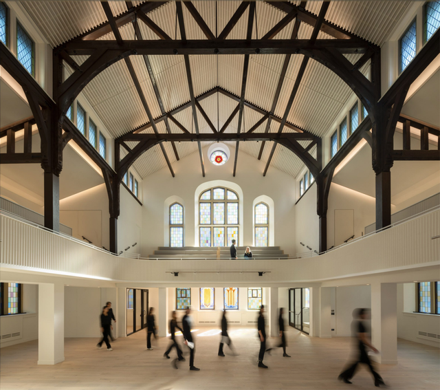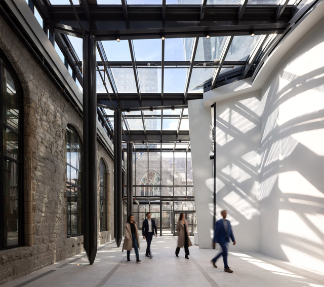 格式还终点提防社折柳享。一个亮堂的双层高中庭将新建塔楼与老教堂相接起来,内部缔造有托儿所、健身房、多功能行为室等法度,便捷住户与临近公众使用。局势内还筹算了再行遐想的人人庭院,增添座椅、绿化和水景,成为人人不错减轻的怒放空间。