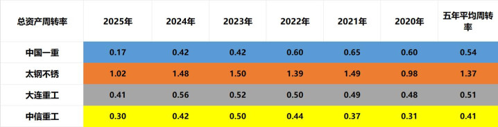 最新三季度营运能力:太钢不锈>大连重工>中信重工>中国一重